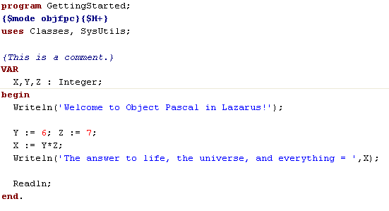 Welcome to Object Pascal in Lazarus! The answer to life, the universe, and everything = 42