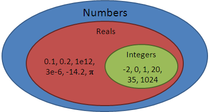 Numbers are classified as either integers or reals. In mathematics, integers are numbers without decimal points and reals consist of all integers plus all numbers with decimal points. In Object Pascal, the definition of integers and reals is similar except numbers like 1e12 with exponential specifiers are automatically considered reals: