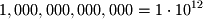scientific notation. Large numbers such as 1 trillion are bulky to write so scientific notation simplifies the process by writing the number as a product of some number and a power of 10. So, the number 1 trillion can be written in scientific notation as the following where 12 is the number of zeros in the number.