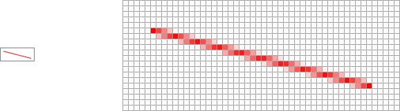 If a line crosses only a tiny bit of a pixel, the raster engine colors that pixel full red and ignores all other pixels. On the other hand, consider the vector-engine line: