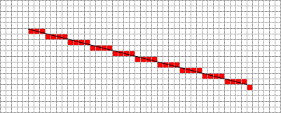 Notice that the line from the vector image appears smoother than in the raster image. This is because even though pixels are small enough to be visibly perceived as single points, they are not small enough so that every point on a line falls exactly on a single pixel. To understand this, we will plot a line from the start and end points of the raster image on the zoomed grid: