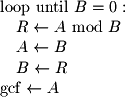 To begin with, we no longer need the swap operation. For example, if A = 16 and B = 40 then A mod B = 16. We can then assign B to A and 16 to B which has effectively swapped the integers. Perhaps not surprisingly, the anatomy of this pseudocode will look very similar to the anatomy of the swap algorithm.
