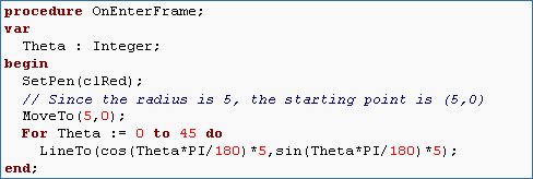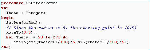 and a radius, we can calculate the x and y coordinates of any point on a circle. Object Pascal defines