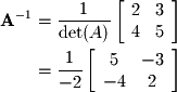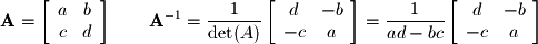 ) we can similarly define a matrix inverse with which to perform division. Using the determinant, we can define the inverse of a