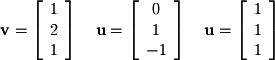 An ordered collection of vectors (unlike a set which is an unordered collection of vectors) can be grouped into a matrix which will be useful for later. For example, the three vectors , , and