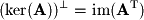An orthogonal complement to a subspace is the vector perpendicular to all the vectors in that subspace. A common example is a plane's normal vector. A normal is the orthogonal complement of a plane. The following are formulas that relate kernels and images. You should know these formulas. In the following the orthogonal complement of