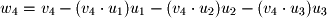 The following is the Gram-Schmidt process. The number of steps is equal to the number of vectors in the basis. In this case there are 4 steps: